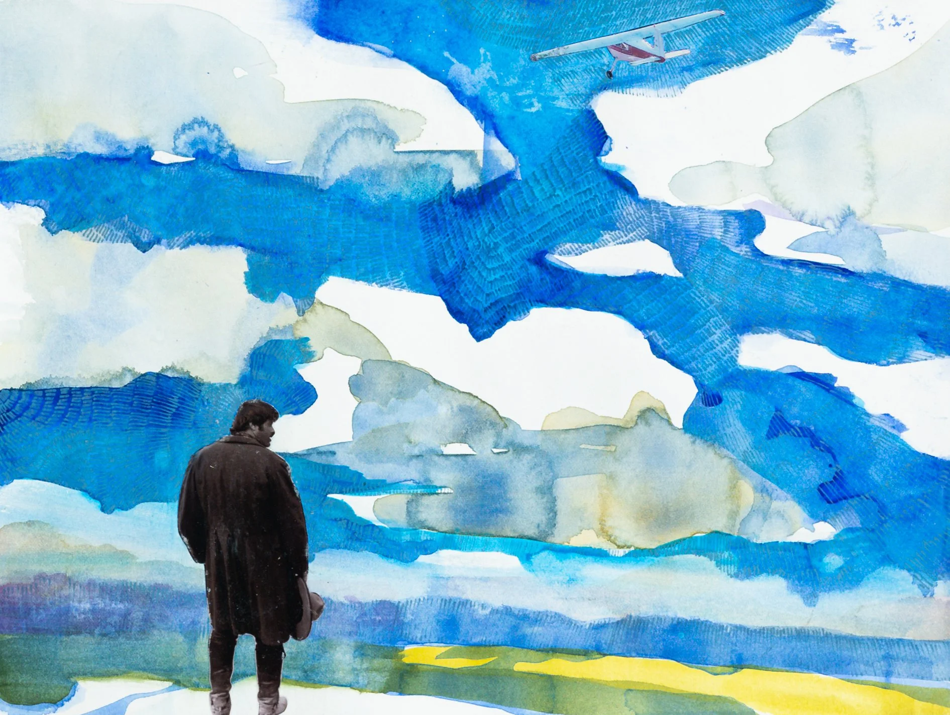 Education of a Wandering Man ©2022, 11 x 14 watercolor and collage on paper. Available at Soapbox Arts